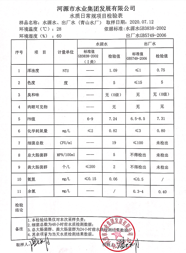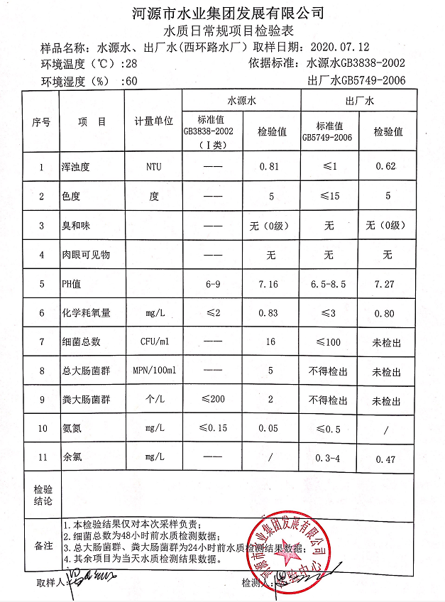 2020年7月12日水質(zhì)檢驗(yàn)報(bào)告