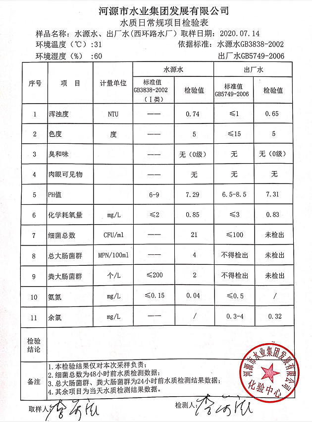 2020年7月14日水質(zhì)檢驗(yàn)報(bào)告