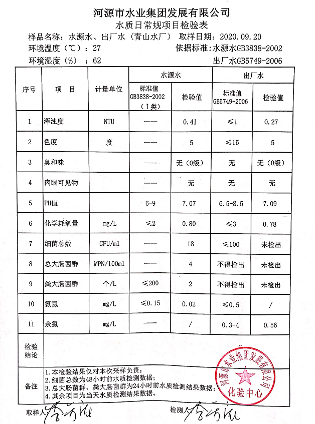 2020年9月20日水質(zhì)檢驗(yàn)報(bào)告