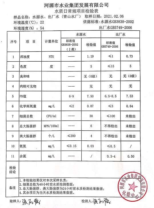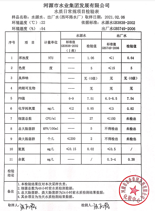 2021年2月6日水質(zhì)檢驗(yàn)報(bào)告