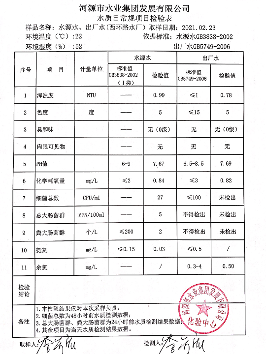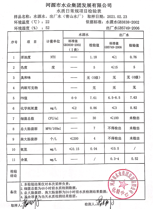 2021年2月23日水質(zhì)檢驗報告
