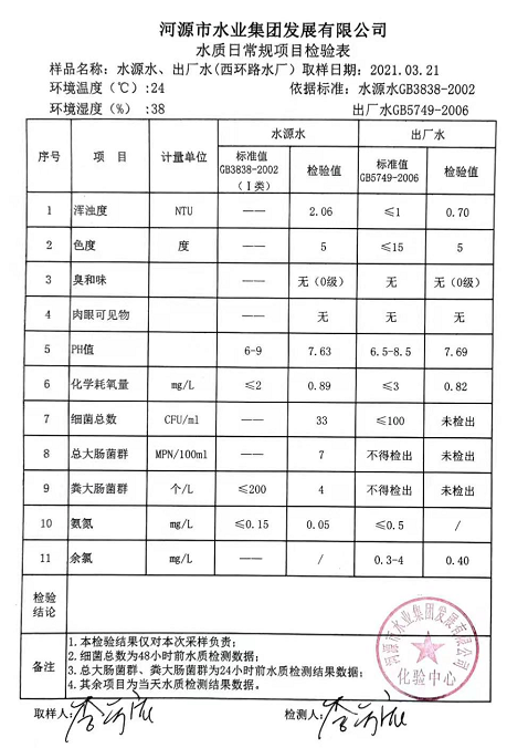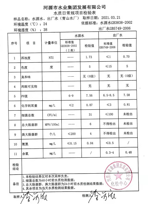 2021年3月21日水質(zhì)檢驗(yàn)報(bào)告