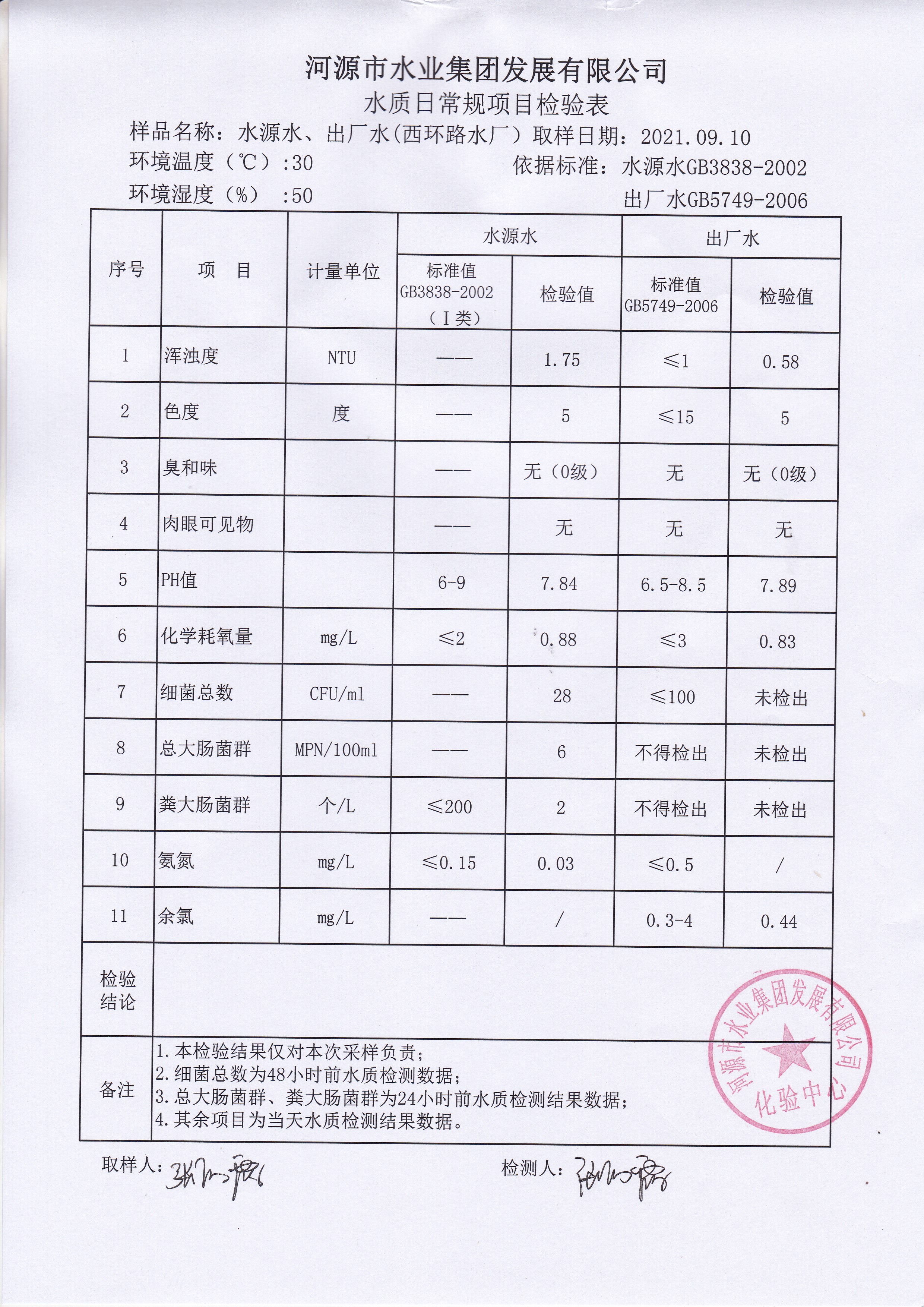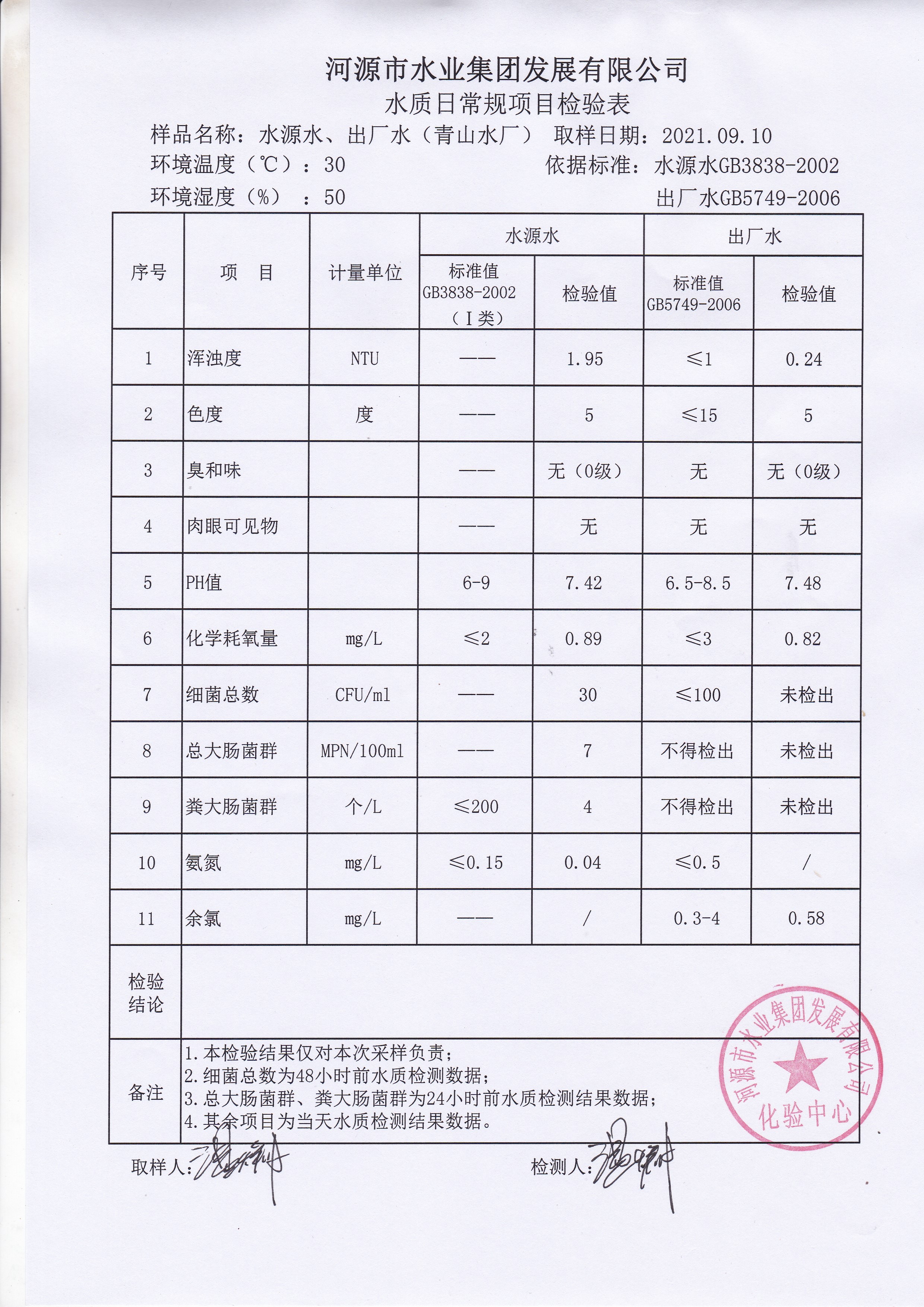 2021年9月10日水質(zhì)檢驗(yàn)報告 ??