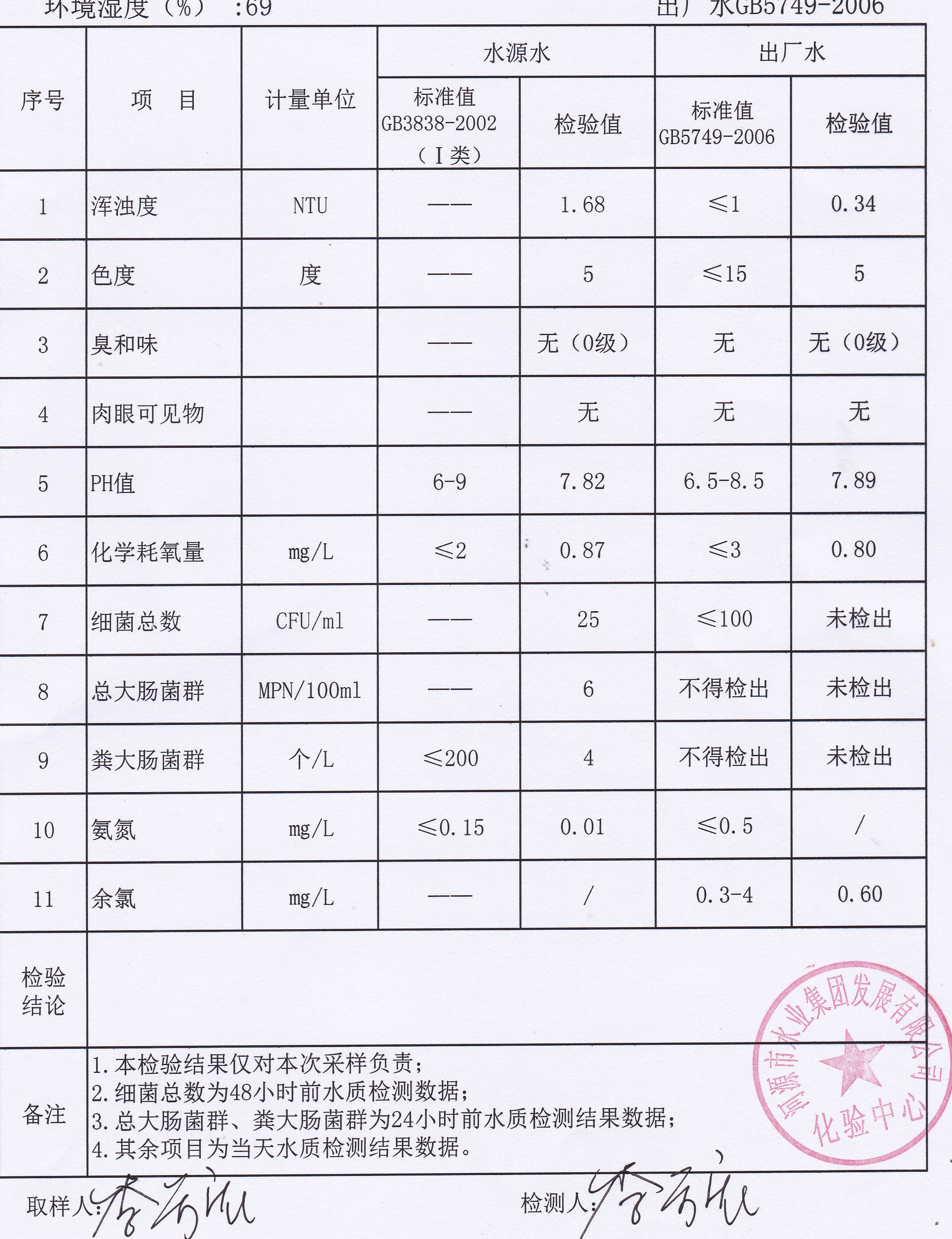 2021年10月12日水質(zhì)檢驗(yàn)報(bào)告