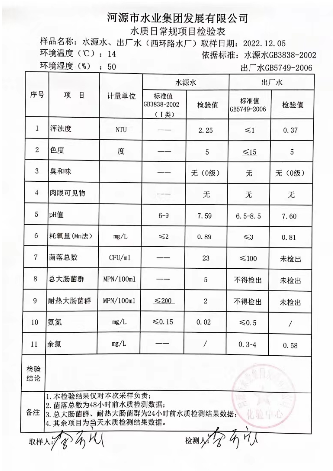 2022年12月5日水質(zhì)檢驗(yàn)報(bào)告