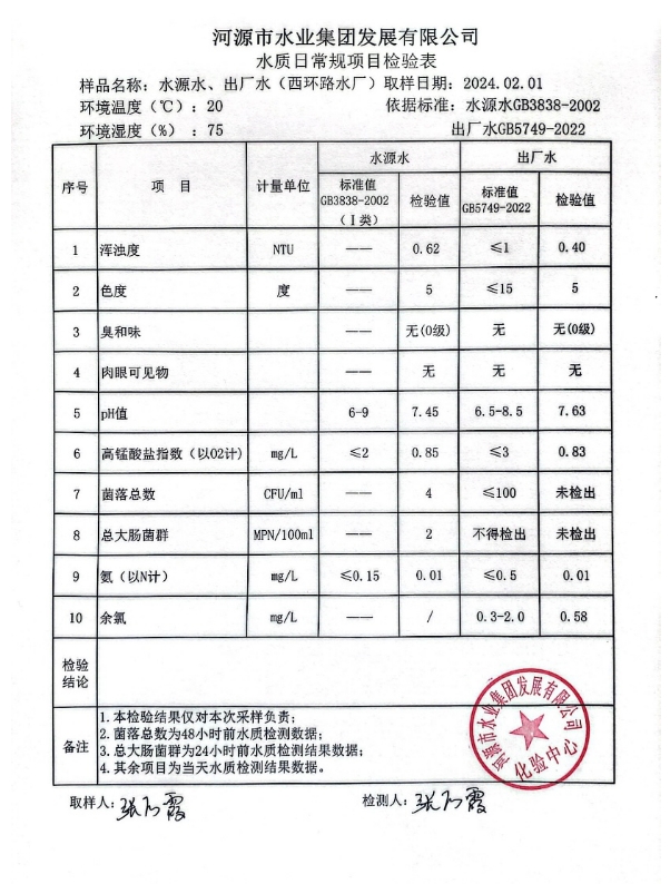 2024年2月1日水質(zhì)檢驗報告 ???