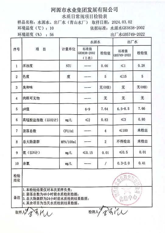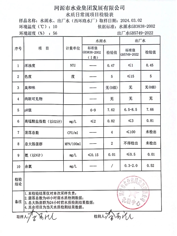 2024年3月2日水質(zhì)檢驗(yàn)報告 ???