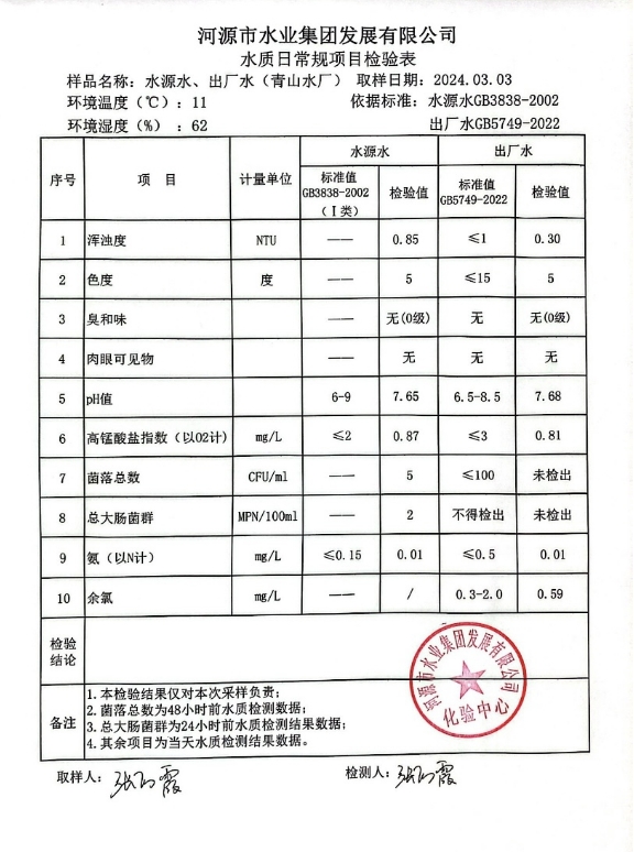 2024年3月3日水質(zhì)檢驗(yàn)報告 ???