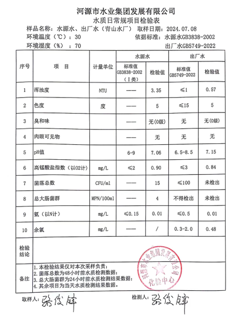 2024年7月8日水質(zhì)檢驗(yàn)報(bào)告