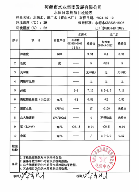 2024年7月12日水質(zhì)檢驗報告
