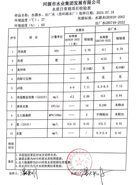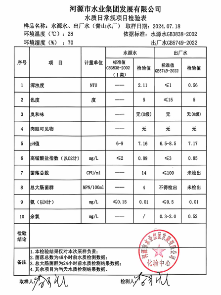 2024年7月18日水質(zhì)檢驗(yàn)報(bào)告