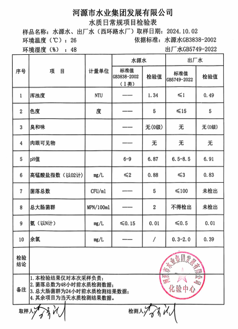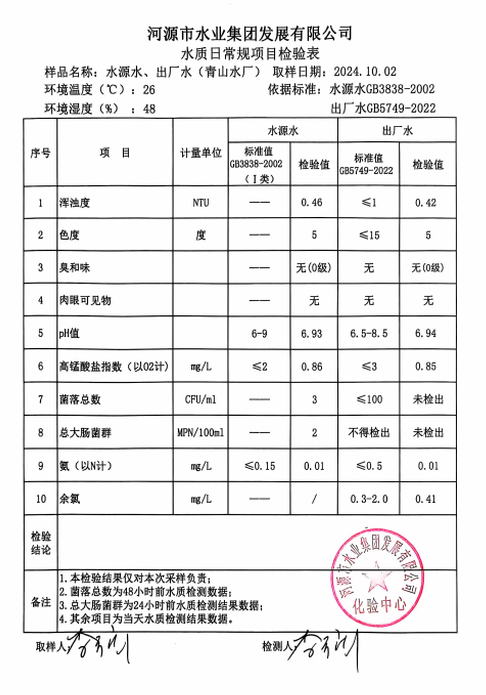 2024年10月2日水質(zhì)檢驗(yàn)報(bào)告